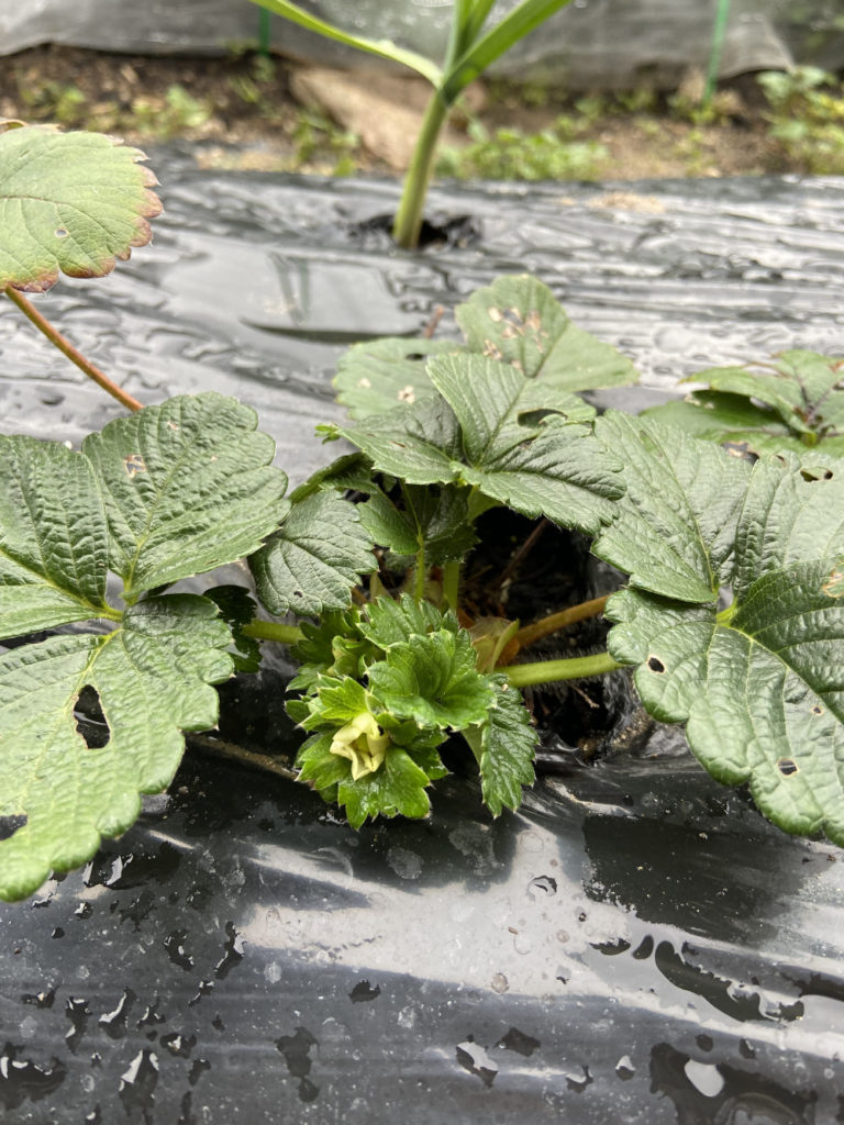 まだ12月なのに花が咲いた苺。春が楽しみ。
